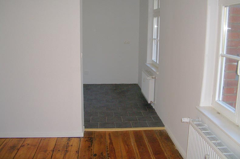 Die 3 Zimmer Wohnung befindet sich im 2.Obergeschoss eines Mehrfamilien Wohnhauses. Das Haus wurde 2010 durch den heutigen Eigentümer komplett, liebevoll und hochwertig saniert. Die Wohnung überzeugt durch eine gute Wohnausstattung sowie einer durchdachten Zimmeraufteilung. Es gibt keine Durchgangszimmer. Ausgehend von der großzügigen Diele erreichen Sie das Wohnzimmer, Schlafzimmer, Kinderzimmer sowie das Bad und die Wohnküche. Alle Wohnräume sowie die Diele sind komplett mit Holzdielen ausgelegt. Das Bad mit Fenster ist hell gefliest und mit einer Badewanne, Hänge-WC, Handwaschbecken und einem Anschluss für die Waschmaschine ausgestattet. Ferner sind der Wohnung ein Kellerraum sowie die Nutzung des Gemeinschaftsgartens zugehörig.